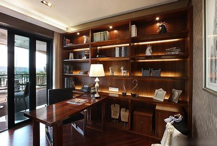 在书房中,不要只是一组大书柜,加一张大写字台、一把椅子,要把情趣充分融入书房的装饰中,一只艺术收藏品、几幅绘画或照片哪怕是几个古朴简单的工艺品,都可以为书房增添几分淡雅、几分清新。只有做到了雅致才可以说是一个好的书房,看书才看得安心。