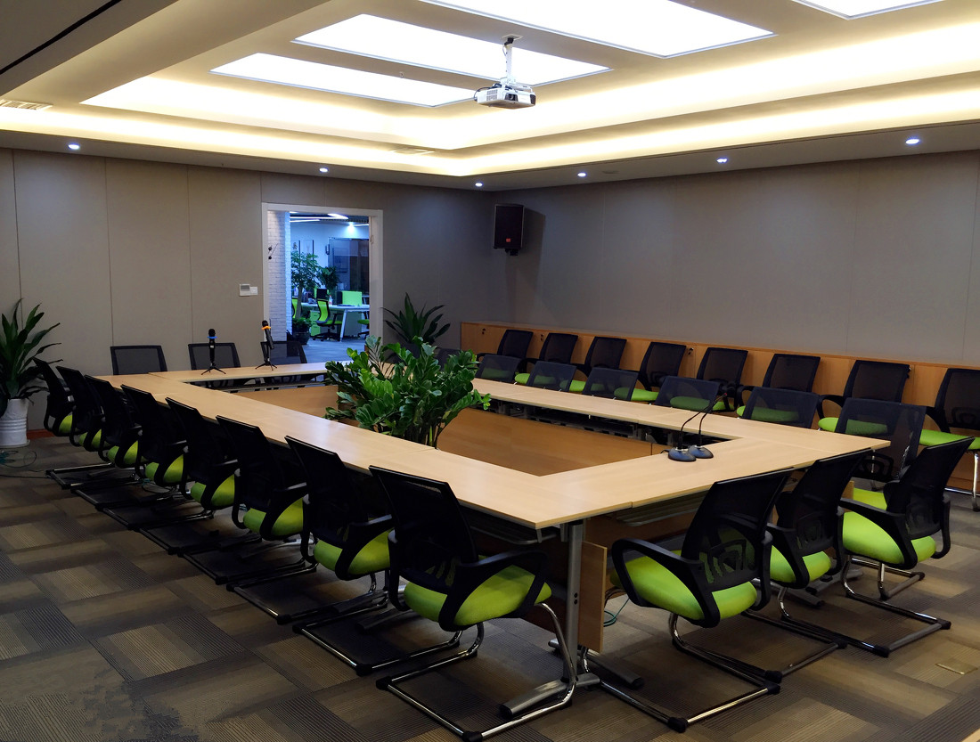 2、有的公司的会议室和办公室的的颜色是一模一样的,所以会让人产生一种错觉,就是和在原来的办公区是一样的,没有给人一种开会的严肃感,所以在会议室的设计上,最好在设计的风格上区别开办公区的设计。
